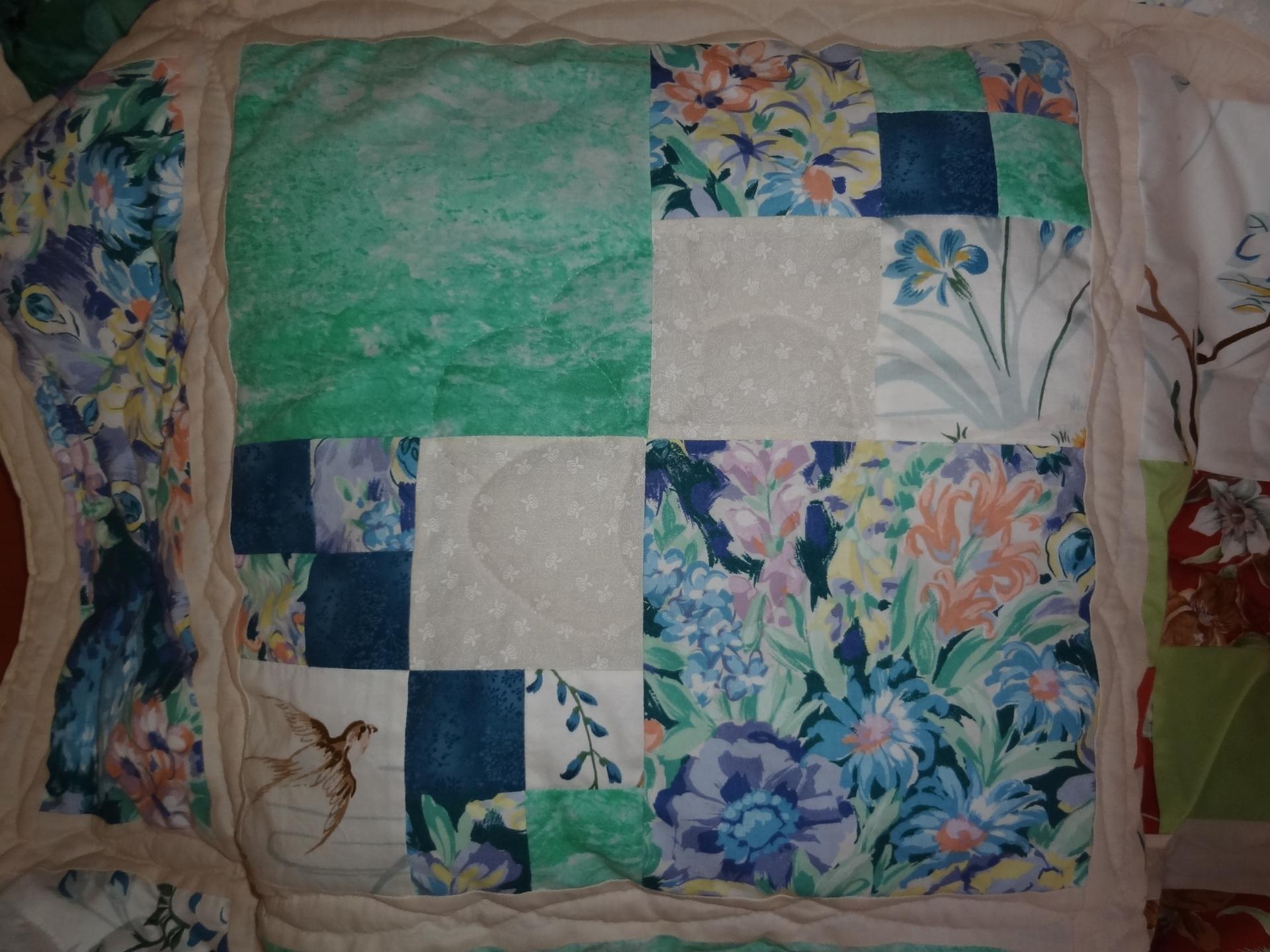 Un seul motif carré de 35cm de côté pour ce couvre-lit, répété 25 fois en tout.