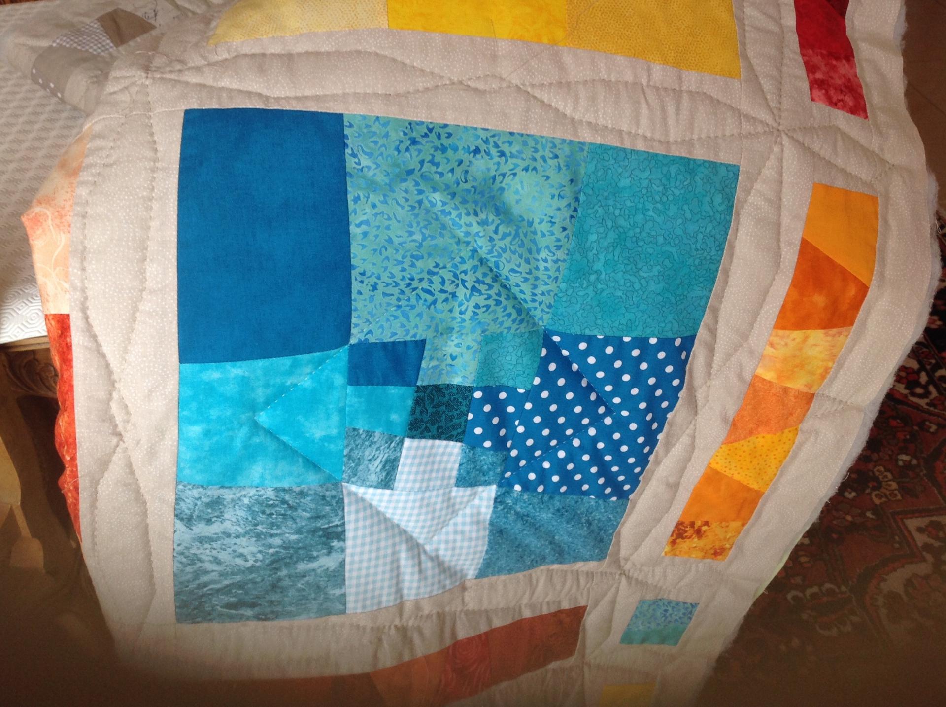 Utilisant les couleurs des blocs mais aussi des petites chutes de tissu.